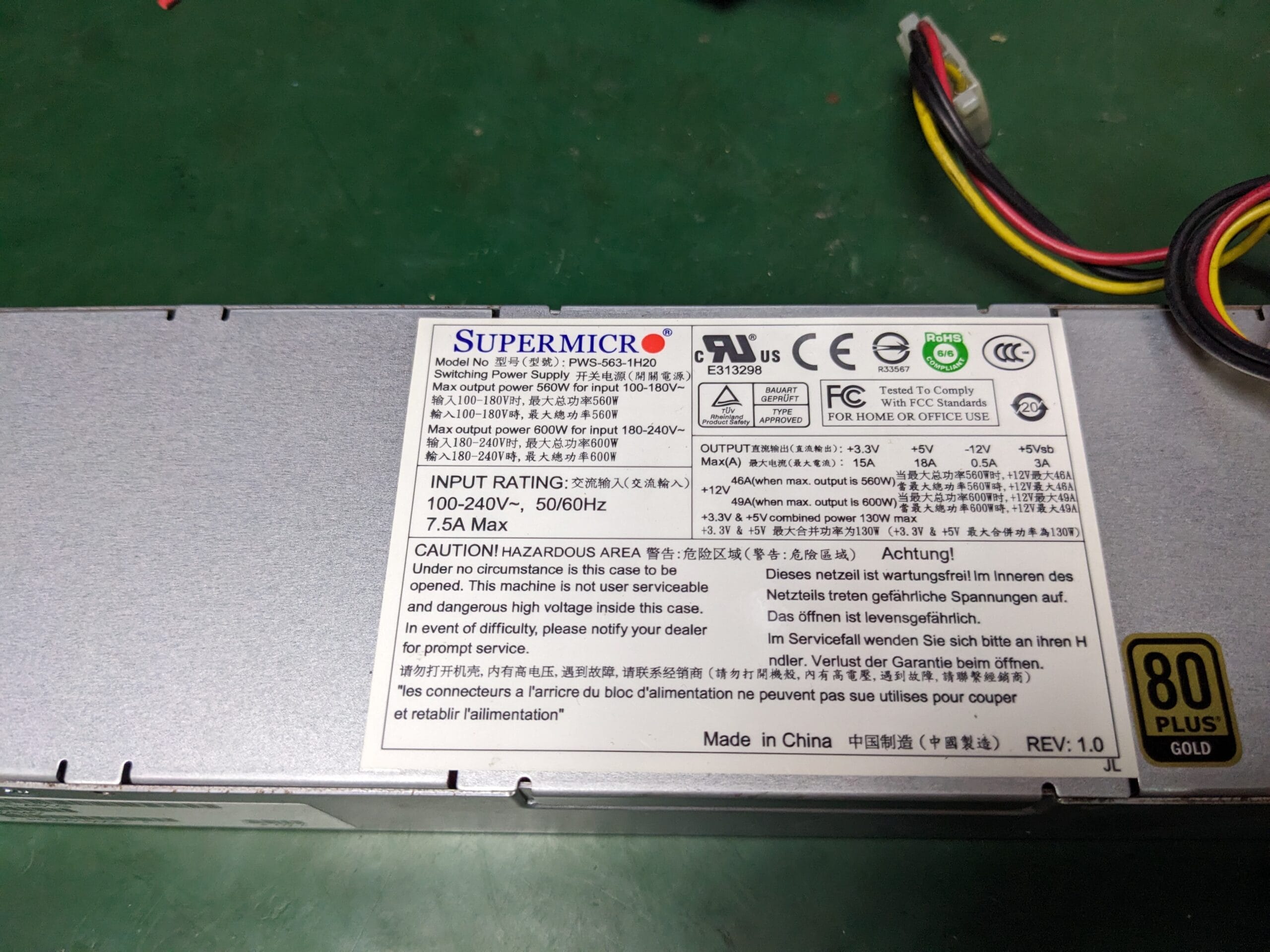 Блок питания для сервера Supermicro PWS-563-1H20 600Вт
